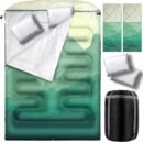 - Double Plus Size: the sleeping bag features a spacious rectangular design for maximum comfort,it accommodates 2 people up to 7 feet tall allowing for ample stretching space;The separate bottom zipper facilitates ventilation for temperature control