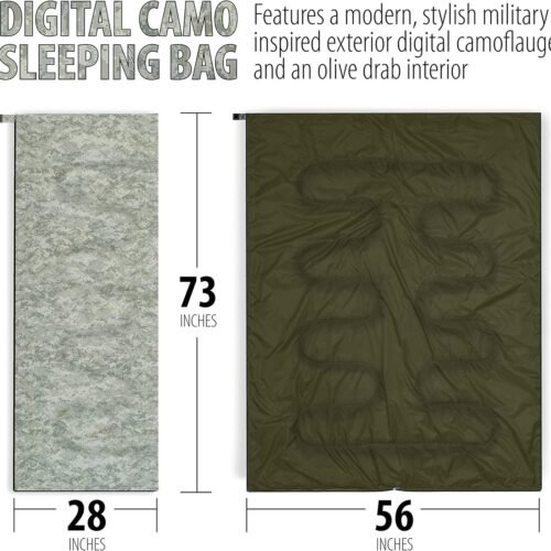 • 20°F Cold Weather Mummy Sleeping Bag, 82 Inches x 33 Inches, Olive Green
