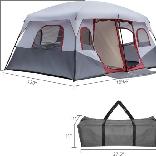 • 12'x10'x8'Dome Camping Tent 5-6 Person 4 Season Double Layers Waterproof Anti-UV Windproof Tents Family Outdoor Camping Tent